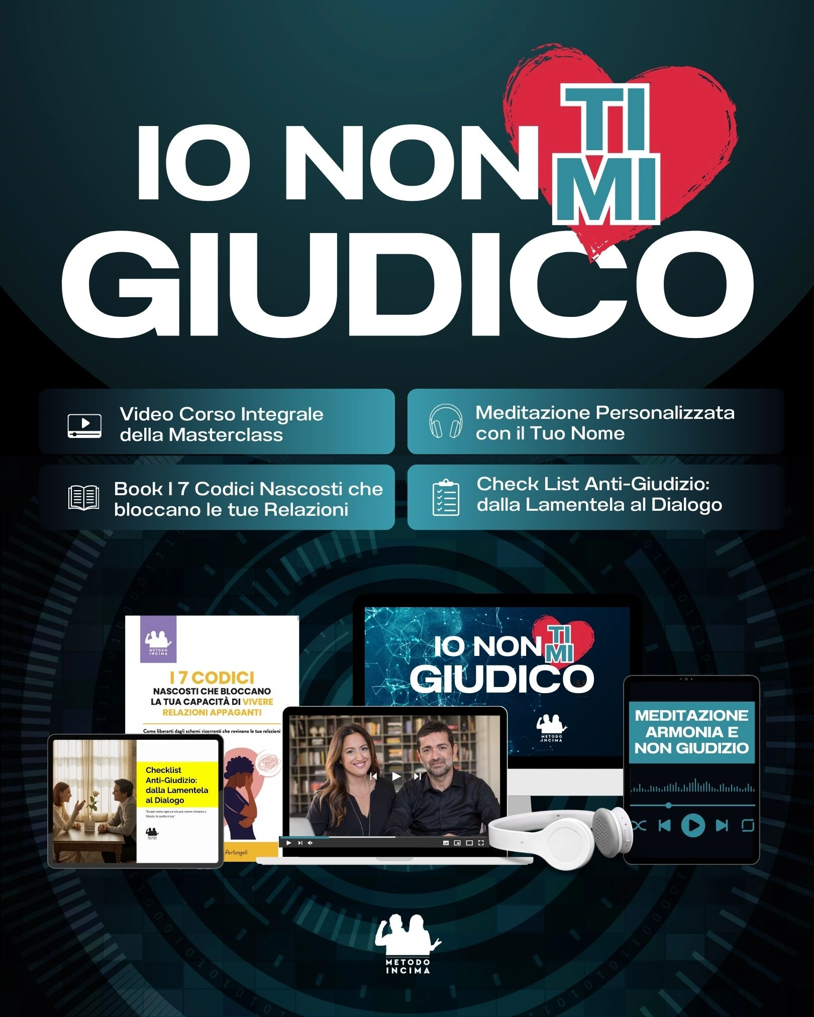 Accedendo gratuitamente alla Masterclass, otterrai anche il Pacchetto IO NON (TI/MI) GIUDICO che comprende: