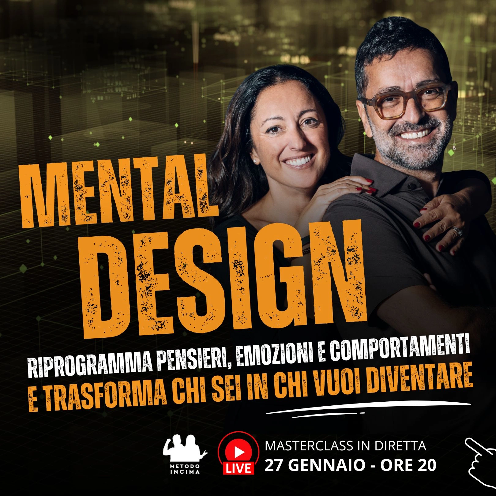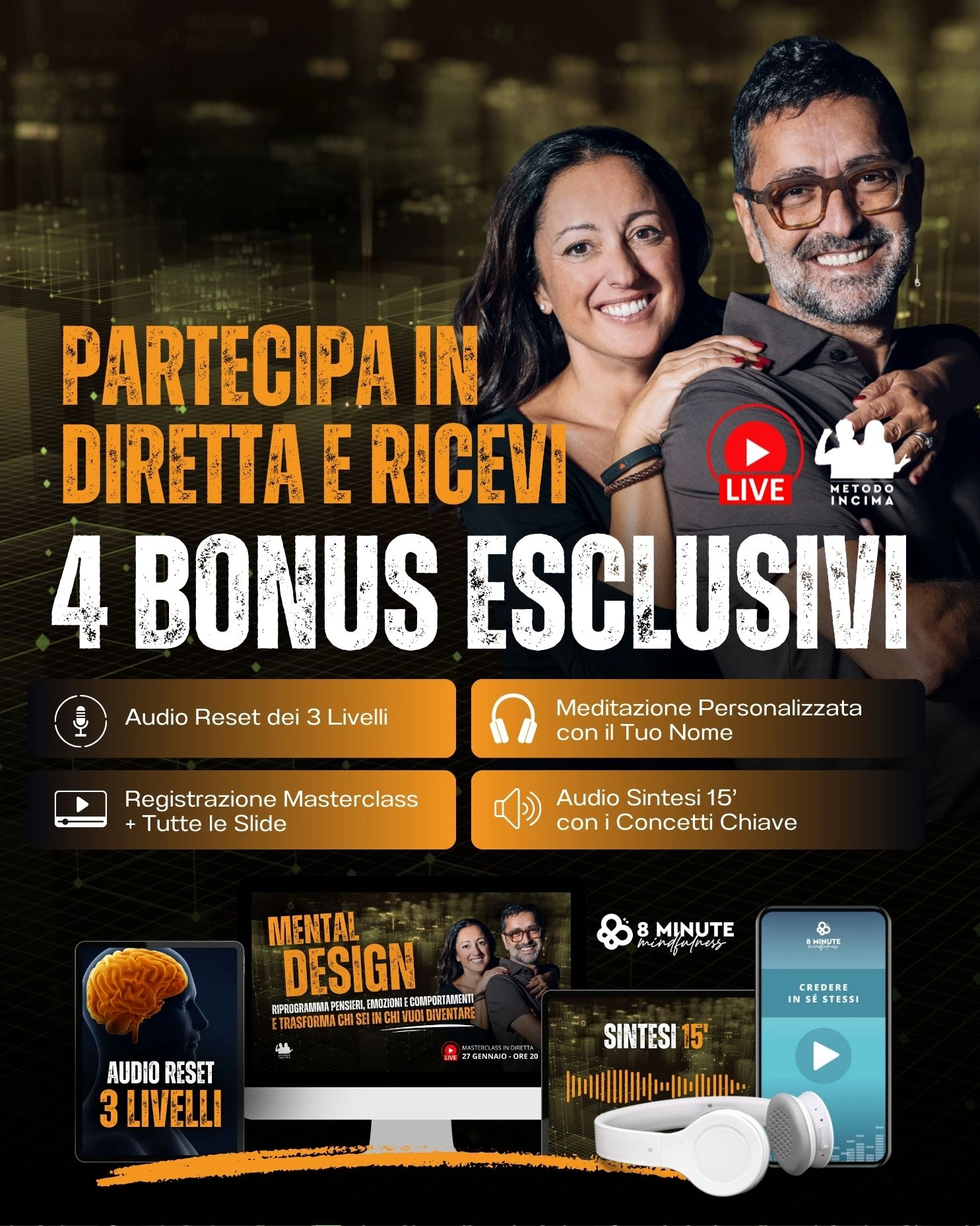 Autori dei bestseller Mente Potente e Il Sentire Quantico, hanno creato il Metodo Incima: un sistema di coaching esclusivo, pensato per superare i limiti della formazione teorica e guidare le persone in un percorso di trasformazione profonda e duratura.