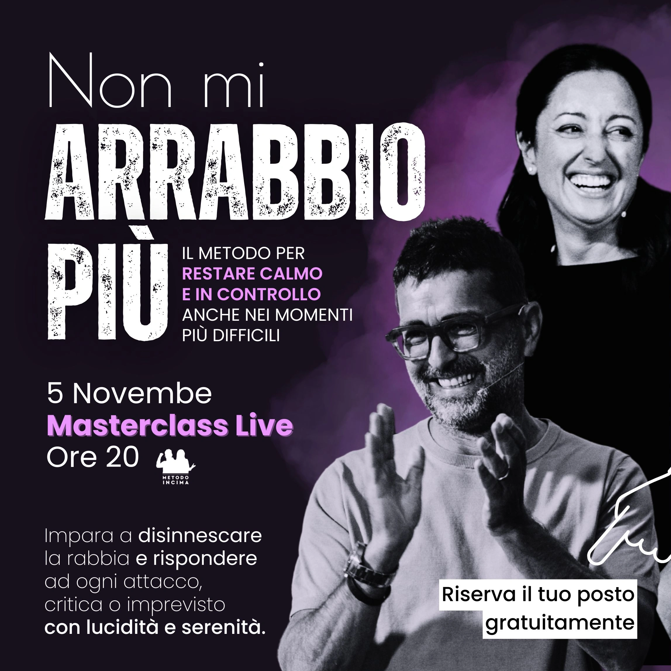 In questa Masterclass scoprirai come cambiare la risposta automatica della rabbia e trasformarla in lucidità e presenza — anche nelle situazioni più difficili.